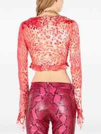 Jaguar-print blouse Highlights - Coral red - Front button fastening - Ruffled trim - V-neck - Cropped Imported Composition Viscose 75%, Silk 25%
