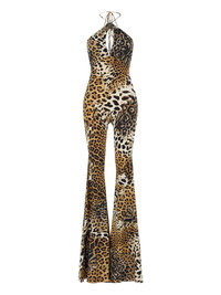 jaguar-print jumpsuit Highlights - Sand beige - Rear tie fastening - Cut-out detailing - Halterneck - Flared Made in Italy Composition Polyamide 86%, Spandex/Elastane 14%