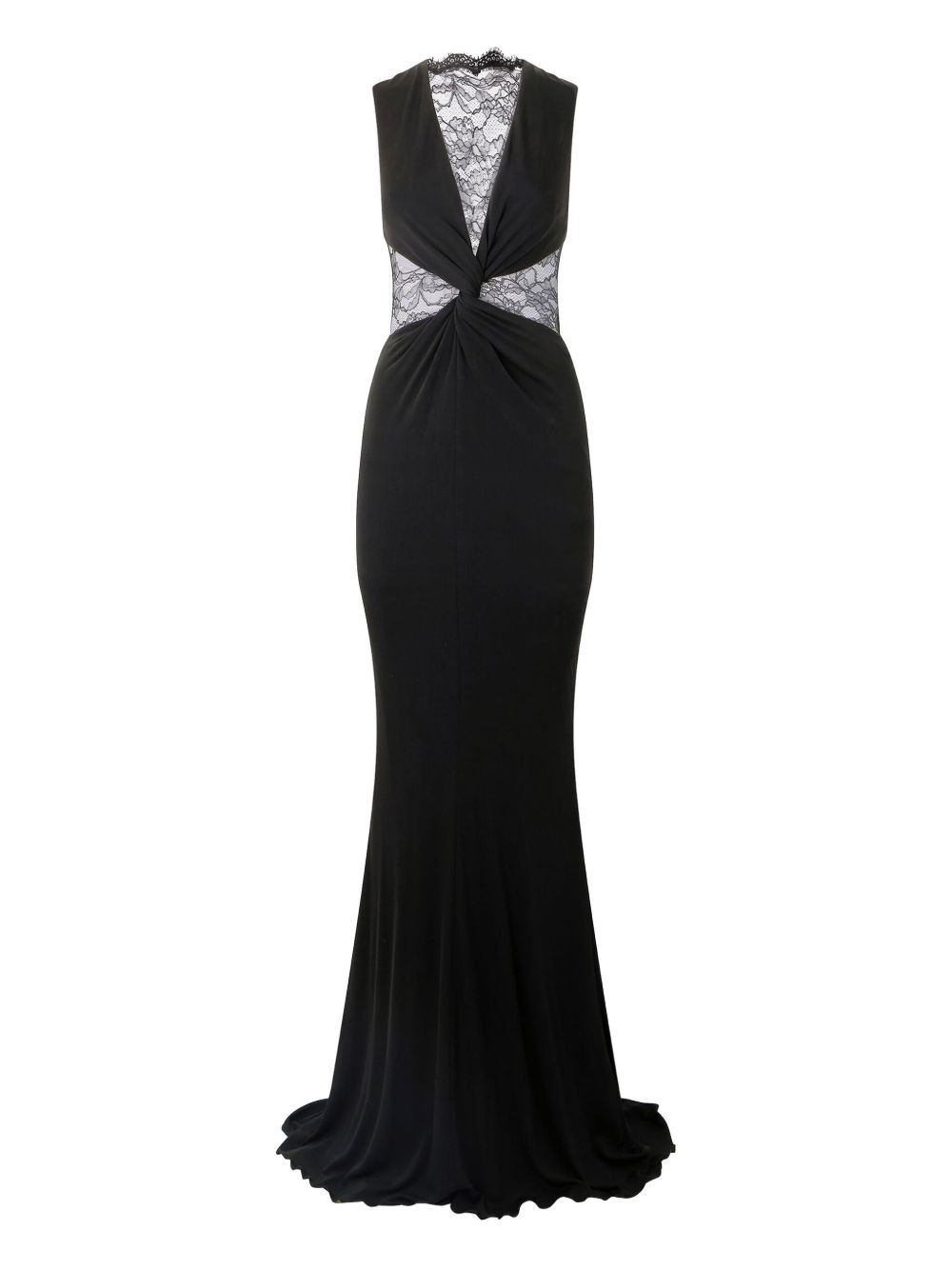 lace-insert gown Highlights - Black - Sleeveless design - Lace insert detail - Plunging neckline - Twisted front feature Imported Composition Fabric 100% Washing instructions Read Manufacturer Guidelines