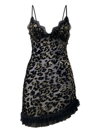 lace-trimmed leopard-pattern mini dress Highlights - Black - Silk - Gold leopard embroidery - Ruffled hem - Spaghetti straps - Lace trim - Slip style Imported Composition Silk 100% Washing instructions Read Manufacturer Guidelines