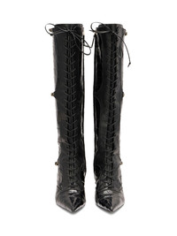 lace-up crocodile-effect boots Highlights - Black - Crocodile effect - Lace-up front - Gold-tone buckle accents - Pointed toe - Stiletto heel Made in Italy Composition Outer: Leather 100% Sole: Leather 100% Lining: Leather 100%