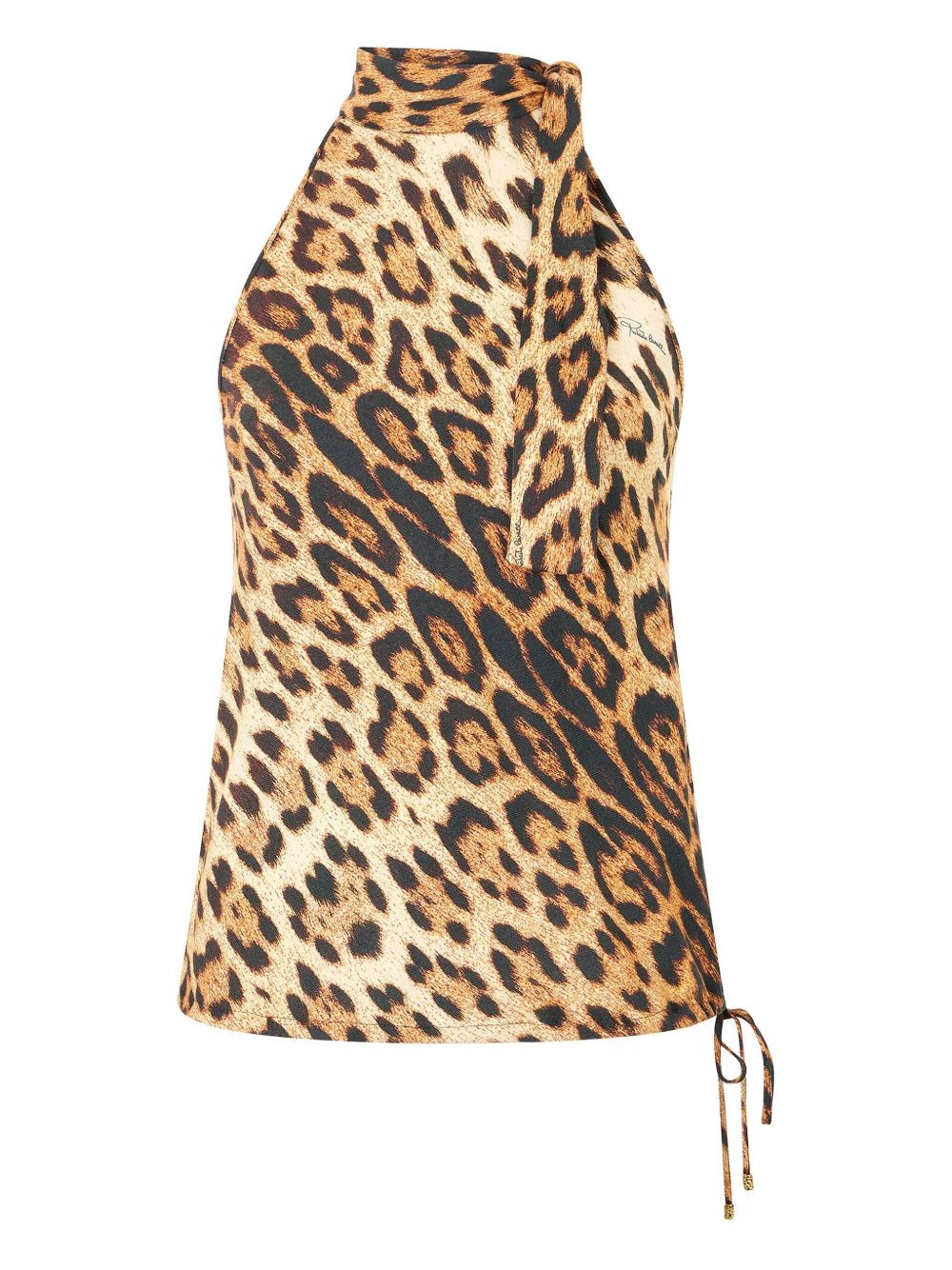 leopard-print halter-neck top Highlights - Brown - All-over animal print - Halter neckline - Sleeveless Imported Composition Fabric 100% Washing instructions Read Manufacturer Guidelines