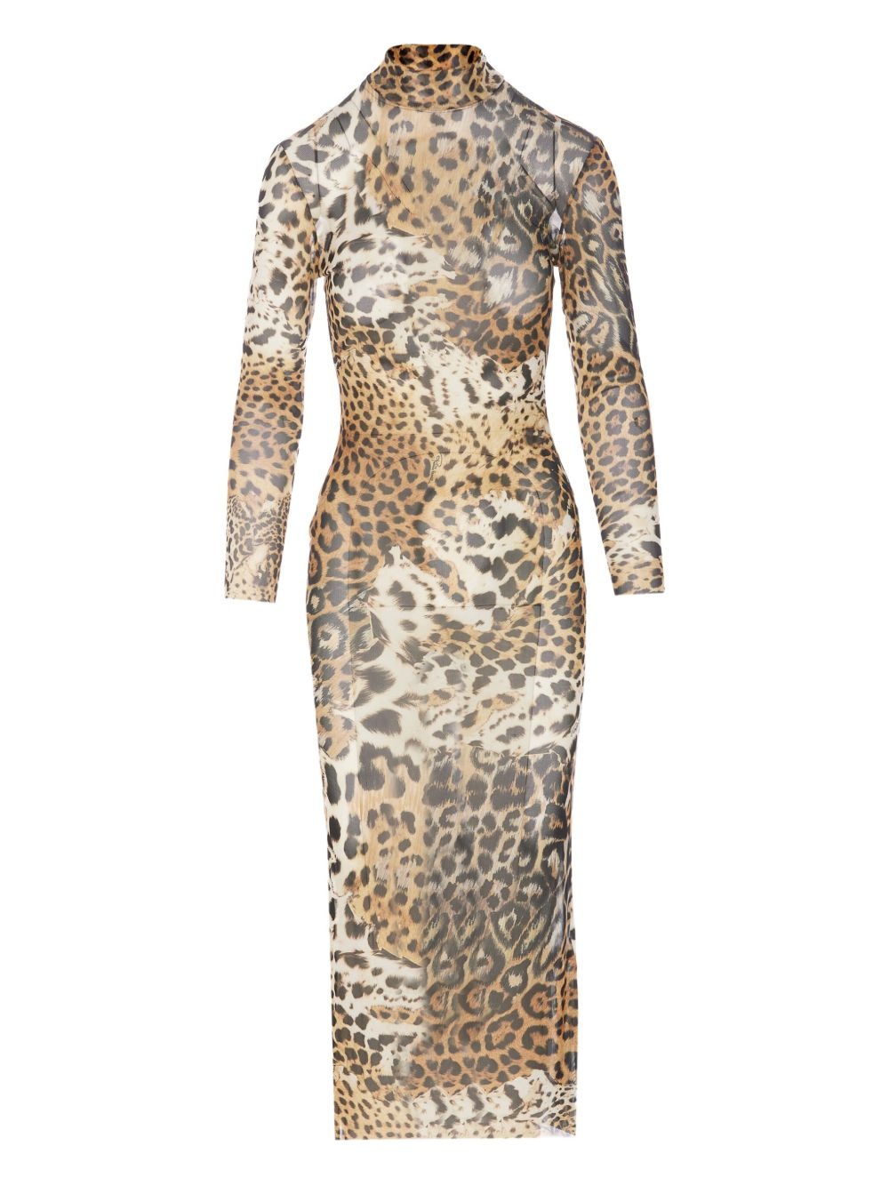 Leopard-print midi dress Highlights - Beige - Rear zip fastening - Mock neck - Long sleeves Made in Italy Composition Polyester 95%, Elastane 5%