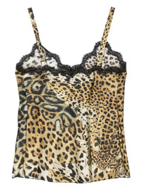 leopard-print top Highlights - Black, yellow gold - Silk - All-over leopard print - Lace trim - Wide shoulder straps - V-neck - Unlined - Straight hem Made in Italy Composition Silk 100%