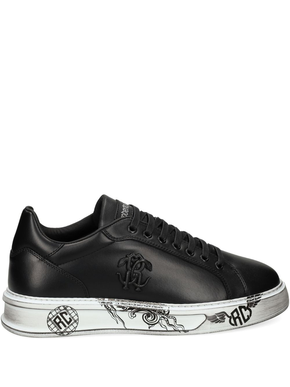 logo-embellished sneakers Highlights - Black - Leather - Embossed logo - Graphic print - Rubber sole - Distressed effect Made in Italy Composition Outer: Leather 100% Sole: Rubber 100% Lining: Other Materials 100%