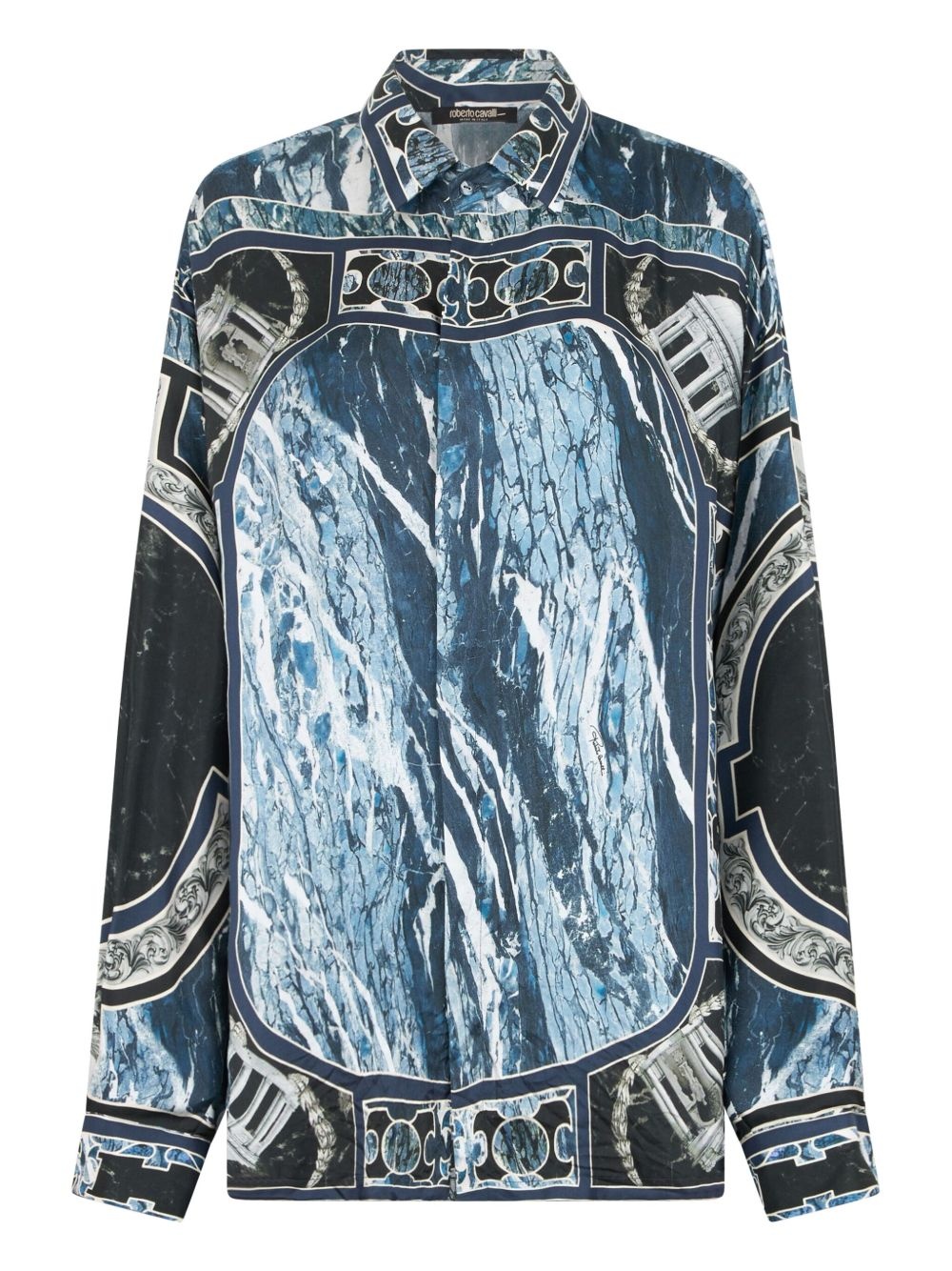 marble-print shirt Highlights - Ocean blue - Concealed front button fastening - Buttoned cuffs - Baroque-pattern print - Long sleeves Imported Composition Silk 100%