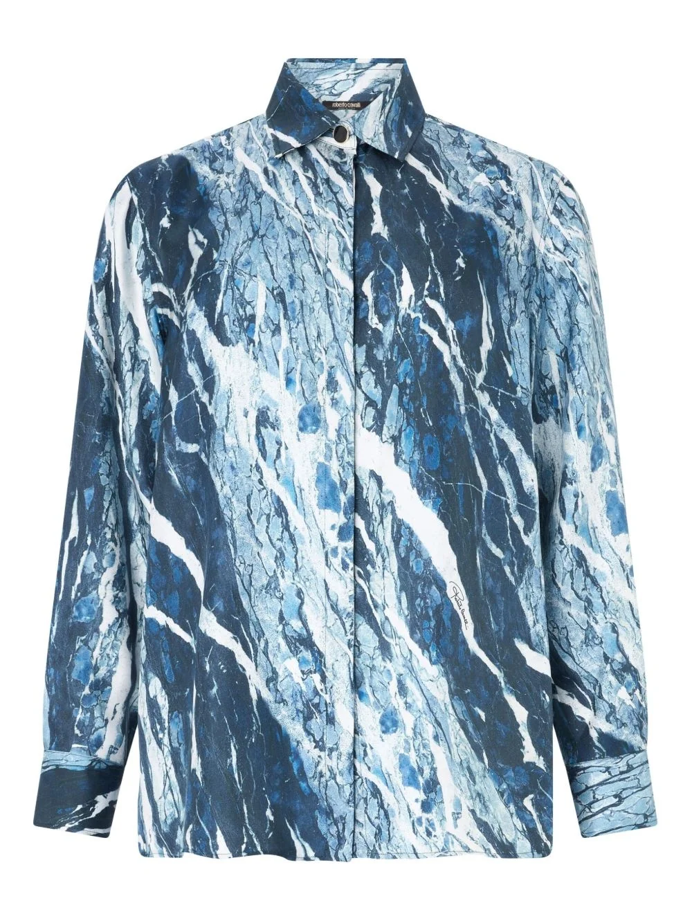 marble-print shirt Highlights - Indigo blue - Concealed front button fastening - Classic collar - Shirt sleeves Made in Italy Composition Silk 100%