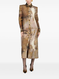 marble-print shirt dress Highlights - Beige - Marble print - Button fastening - Long sleeves - Leopard print collar - Padded shoulders Imported Composition Silk 100% Washing instructions Read Manufacturer Guidelines