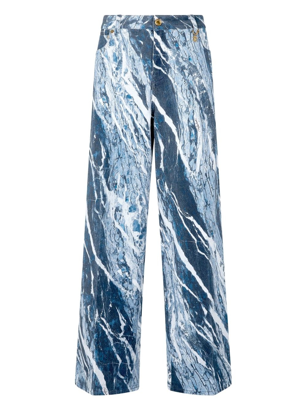 marble-print wide-leg jeans Highlights - Blue - Marble print - Front button closure - Side pockets - Wide-leg silhouette - Loose fit - Belt loops - Rear pockets - Stitched detailing Imported Composition Outer: Cotton 98%, Spandex/Elastane 2% Lining: Polyester 65%, Cotton 35%
