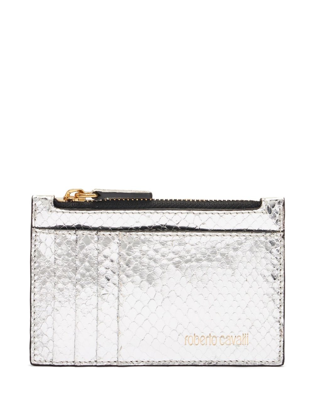 metallic-leather card holder Highlights - Silver-tone - Top zip fastening - Card slots - Rear slit pocket - Debossed logo to the front Imported Composition Outer: Metallic Leather 100%