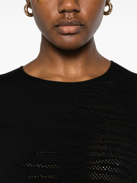 openwork-areas mini dress Highlights - Black - Crew neck - Short sleeves - Straight hem Made in Italy Composition Virgin Wool 87%, Polybutylene Terephthalate (PBT) 13% SIZE & FIT Model measurements Height 5 ft 10 in(1.77 m) Bust/Chest 34.64 in(88 cm) Hips 35.43 in(90 cm) Waist 24.8 in(63 cm) FittingInformation Designed for a slim fit that sits just away from the body offering a close yet comfortable fit Made with a midweight knit, this piece offers some stretch