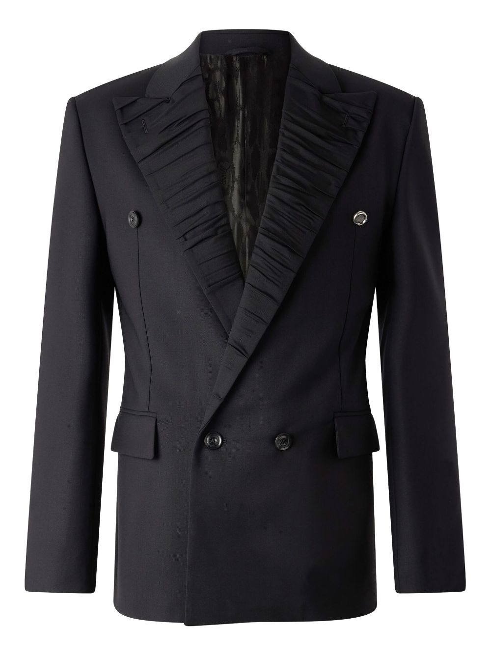 pleat-detail blazer Highlights - Black - Double-breasted button fastening - Two side flap pockets - Buttoned cuffs - Decorative button detailing Imported Composition Outer: Virgin Wool 95%, Viscose 50%, Wool 50%, Elastane 5% Lining: Viscose 100%