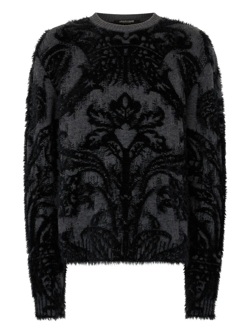 plush wool sweater Highlights - Black - Plush texture - Brocade pattern - Round neck - Long sleeves Made in Italy Composition Wool 100% Washing instructions Read Manufacturer Guidelines