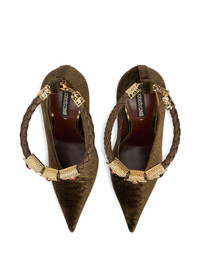 pointed strap pumps Highlights - Green - Ankle strap - Pointed toe - Stiletto heel - Gold-tone hardware - Textured finish Made in Italy Composition Outer: Satin 100% Lining: Leather 100% Sole: Leather 100%