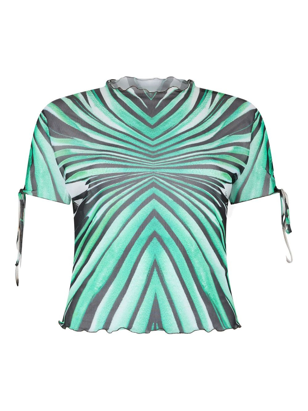 printed top Highlights - Light blue - Abstract pattern - Frilled hem - Tie details at sleeves - High neckline Made in Italy Composition Polyester 95%, Elastane 5% Washing instructions Dry Clean Only