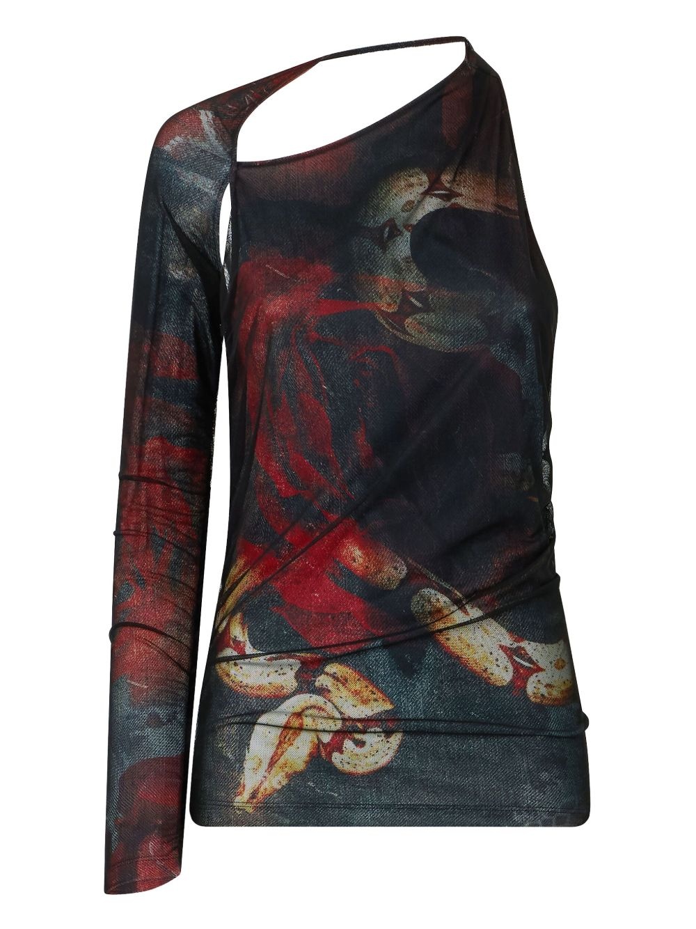 printed top Highlights - Multicolour - Cut-out detailing - Asymmetric neck - Single long sleeve Imported Composition Outer: Polyester 95%, Elastane 5% Lining: Polyester 95%, Elastane 5%