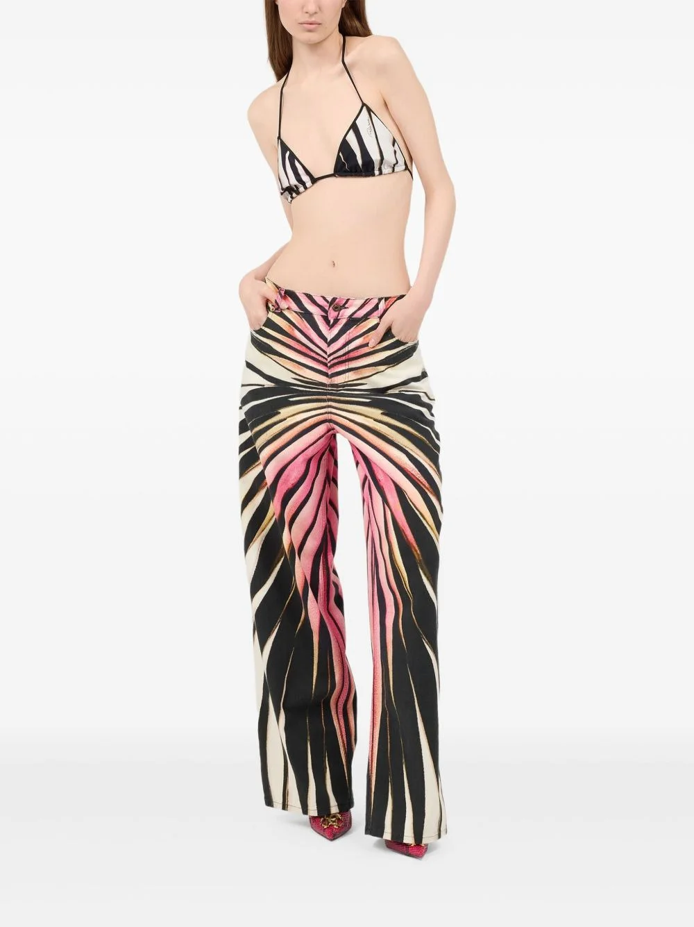 Jeans With Ray Of Pink Print