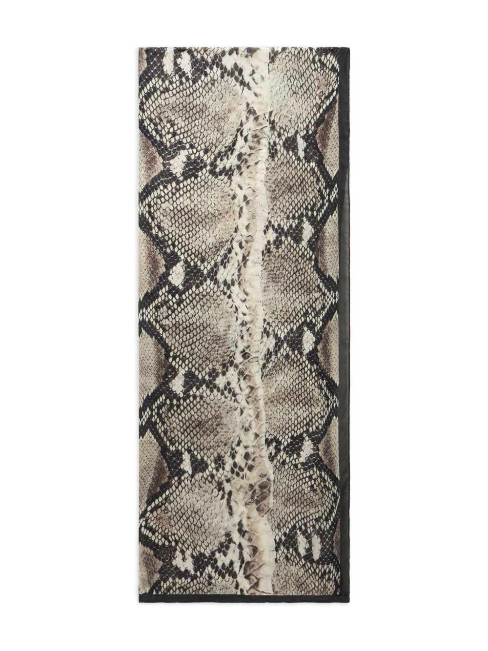 python-print silk scarf Highlights - Off-white and grey - Python print - Black border - Silk - Designer signature Made in Italy Composition Silk 100%