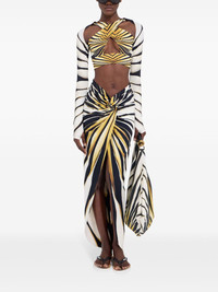 Ray Of Gold print cropped top Highlights - Multicolour - Stretch-design - All-over graphic print - Crossover strap detail - Cut-out detailing - Long sleeves - Straight hem - Cropped Made in Italy Composition Polybutylene Terephthalate (PBT) 83%, Elastane 17% Washing instructions Read Manufacturer Guidelines