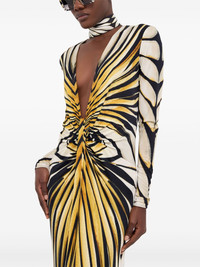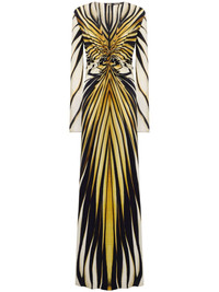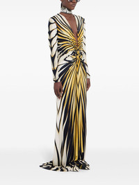 Ray of Gold print maxi dress Highlights - Multicolour - Stretch-design - All-over graphic print - Rear zip fastening - Plunging v-neck - Gathered detailing - Long sleeves - Straight hem - Floor-length Made in Italy Composition Viscose 96%, Elastane 4% Washing instructions Machine Wash
