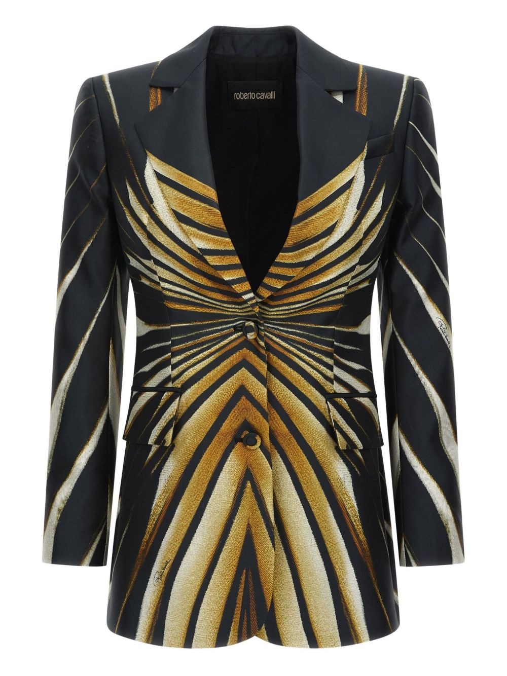 Ray Of Gold-print tailored blazer Highlights - Black and gold-tone - Peak lapels - Single breasted - Front flap pockets - Striking print - Long sleeves Made in Italy Composition Lining: Viscose 52%, Cotton 48% Outer: Silk 100%