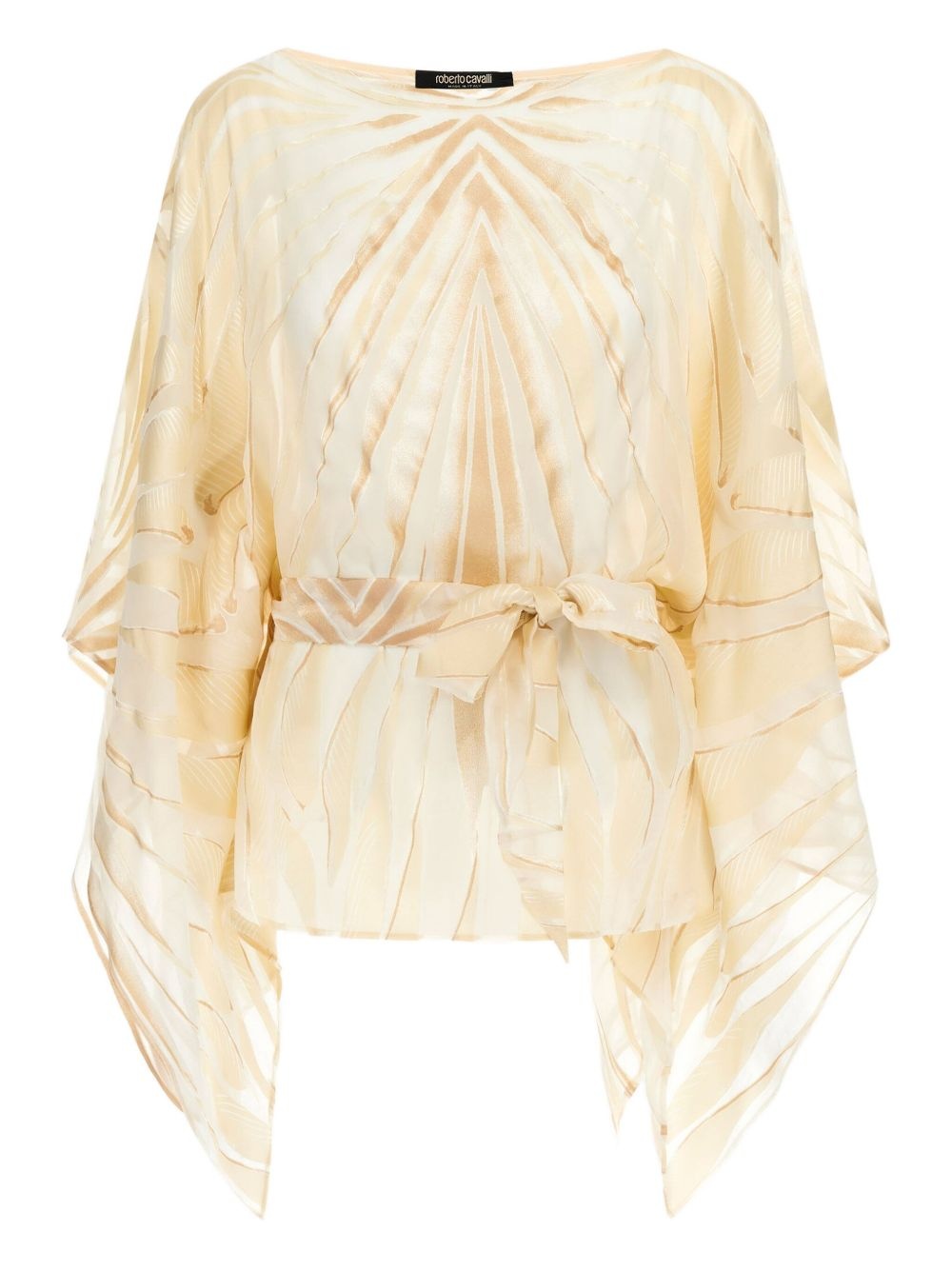 satin blouse Highlights - Ivory white - Abstract pattern print - Boat neck - Long sleeves Made in Italy Composition Viscose 75%, Silk 25%
