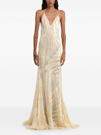 satin maxi dress Highlights - Ivory white - Abstract pattern print - Sleeveless - Rear criss-cross straps - Maxi Made in Italy Composition Viscose 75%, Silk 25%