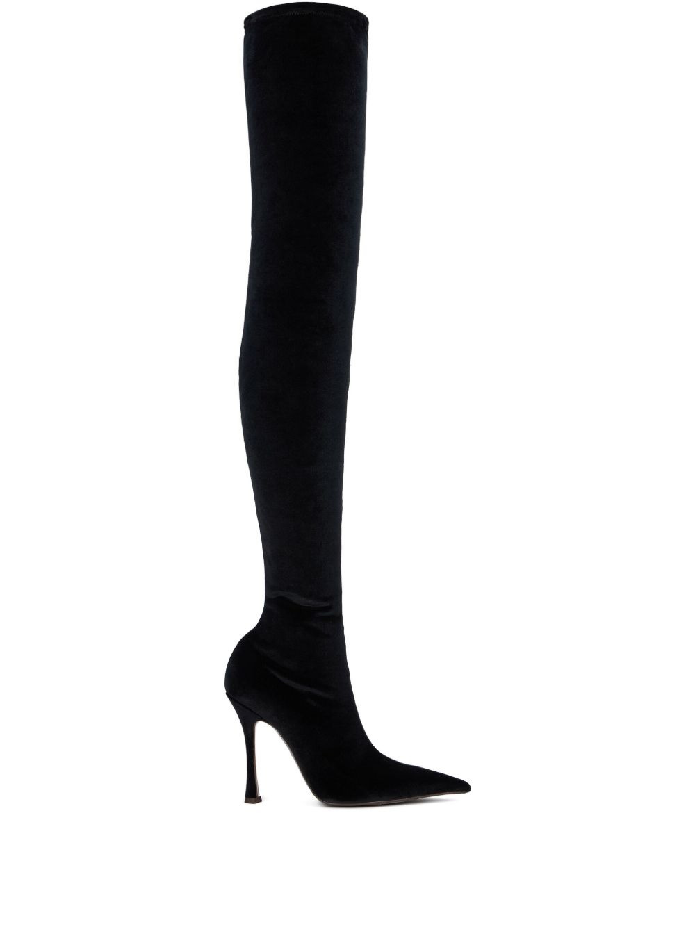 satin pointed-toe thigh-high boots Highlights - Black - Pointed toe - Zip fastening - Thigh-high shaft Made in Italy Composition Sole: Rubber 100% Outer: Fabric 100% Lining: Fabric 100%