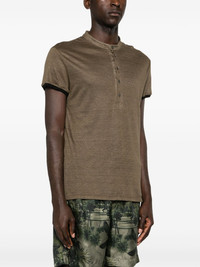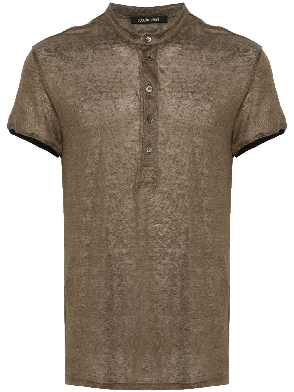 semi-sheer cotton polo shirt Highlights - Khaki/black - Cotton - Slub texture - Semi-sheer construction - Logo patch to the rear - Band collar - Front button placket - Short sleeves - Contrasting ribbed cuffs - Straight hem Made in Italy Composition Cotton 100% SIZE & FIT Model measurements Height 6 ft 2 in(1.87 m) Bust/Chest 36.41 in(92.5 cm) Hips 37 in(94 cm) Waist 29.52 in(75 cm) FittingInformation Designed for a relaxed fit, this polo shirt offers comfort and movement Made with a lightweight knit, this piece offers some stretch This piece fits true to size – take your usual size