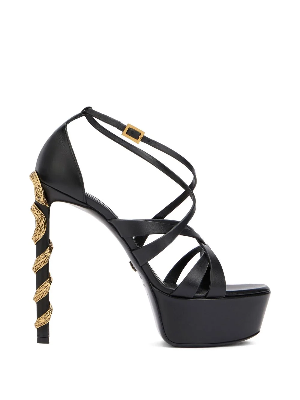 Serpentine stiletto sandals Highlights - Black - Strap design - Platform sole - Buckle fastening - Open toe Imported Composition Outer: Calf Leather 100% Lining: Calf Leather 100% Sole: Calf Leather 100%