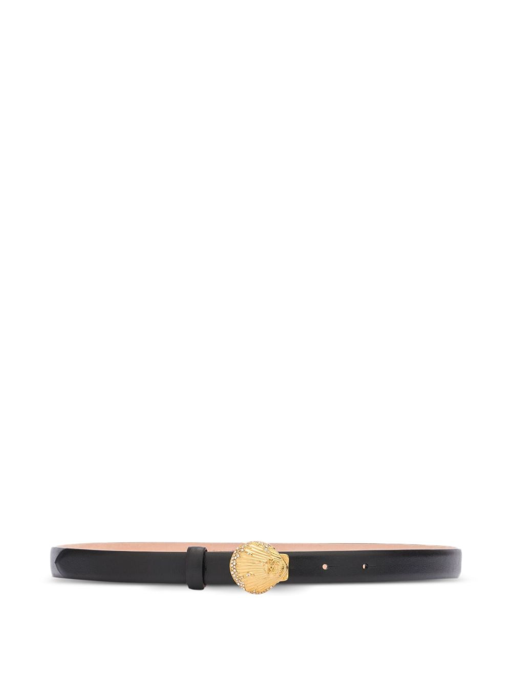 shell-buckle belt Highlights - Black - Gold-tone - Shell-shaped buckle - Embellished with rhinestones - Adjustable fit - Smooth finish Imported Composition Calf Leather 100%