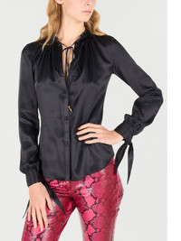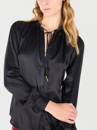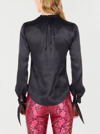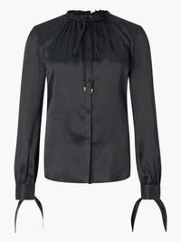 snake-print blouse Highlights - Black - Front button fastening - Gathered tie neck - Long sleeves - Tied cuffs Made in Italy Composition Silk 100% Washing instructions Dry Clean Only