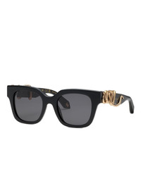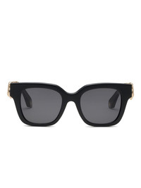square-frame sunglasses Highlights - Black - Square silhouette - Tinted lenses - Gold hardware accents - Wide arms - Statement design - These glasses come with a protective case. Made in Italy Composition Acetate 100% SIZE & FIT Measurement Arm Length 5.11 in(13 cm) Bridge Width 0.78 in(2 cm) Lens Diameter 2 in(5.1 cm)