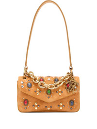 stone-embellished shoulder bag Highlights - Yellow - Gold-tone chain - Stone embellishment - Flap closure - This piece comes complete with a protective dust bag. Imported Composition Outer: Calf Suede 100%, Stone 100%