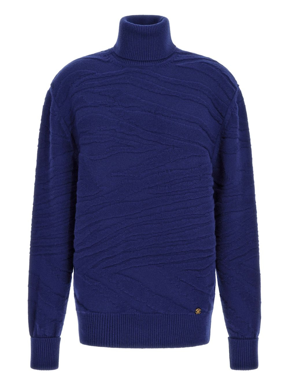 turtleneck wool sweater Highlights - Dark blue - Wool - Textured knit - Turtleneck - Ribbed hem - Ribbed cuffs - Logo detail Made in Italy Composition Virgin Wool 100% Washing instructions Read Manufacturer Guidelines