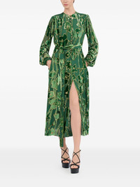 velvet floral-print midi dress Highlights - Green - Velvet floral appliques - Sequin embellishments - Long sleeves - Belted waist - Button fastening Imported Composition Viscose 61%, Silk 39% Washing instructions Read Manufacturer Guidelines