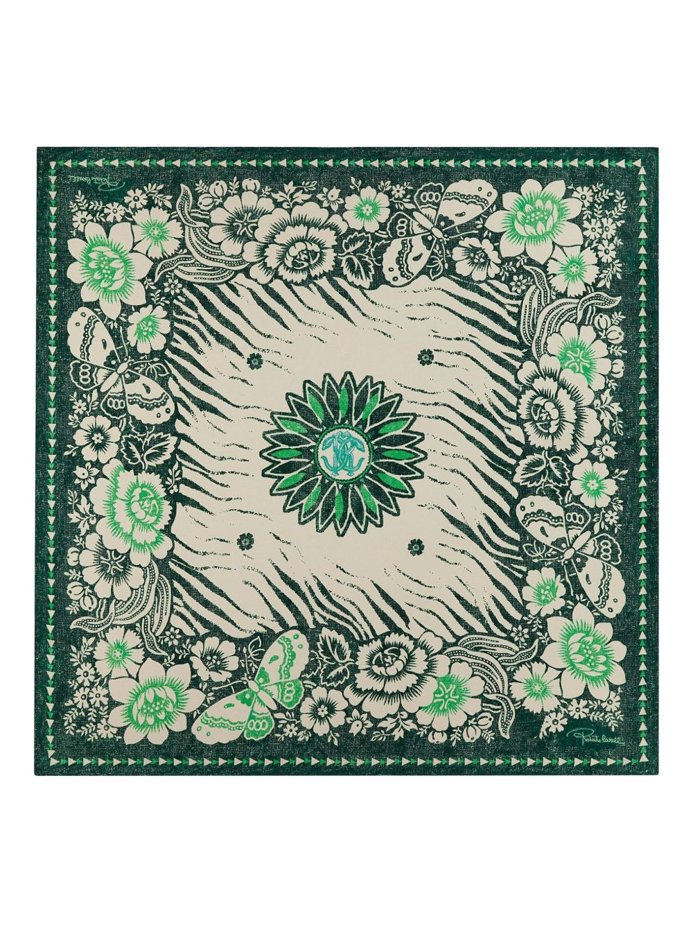 zebra mirro- monogram scarf Highlights - Green - Zebra pattern - Floral print - Butterfly motif - Mirror monogram - Border detail Imported Composition Silk 100% SIZE & FIT Measurement LENGTH 35.43 in(90 cm) WIDTH 35.43 in(90 cm)