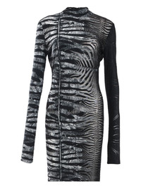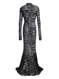 zebra-print maxi dress Highlights - Black - Concealed rear zip fastening - Devore effect - High neck - Long sleeves Made in Italy Composition Viscose 69%, Polyester 31% Washing instructions Read Manufacturer Guidelines