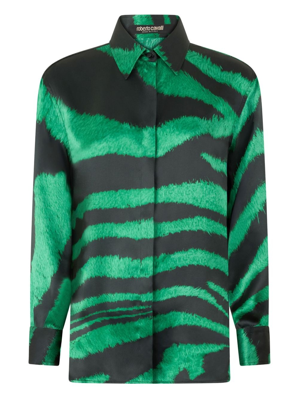 zebra-print shirt Highlights - Emerald green - Concealed front button fastening - Classic collar - Shirt sleeves Imported Composition Fabric 100%