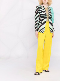 zebra-print silk blazer Roberto Cavalli puts a playful spin on its favoured zebra print, by designing it with turquoise and pink accents. The silk blazer is finished with a single button fastening, in the shape of the brand's signature Panther Head. Made in Italy Composition Silk 100% SIZE & FIT Model measurements Height 5 ft 9 in(1.75 m) Bust/Chest 34.64 in(88 cm) Hips 36.61 in(93 cm) Waist 26.37 in(67 cm)