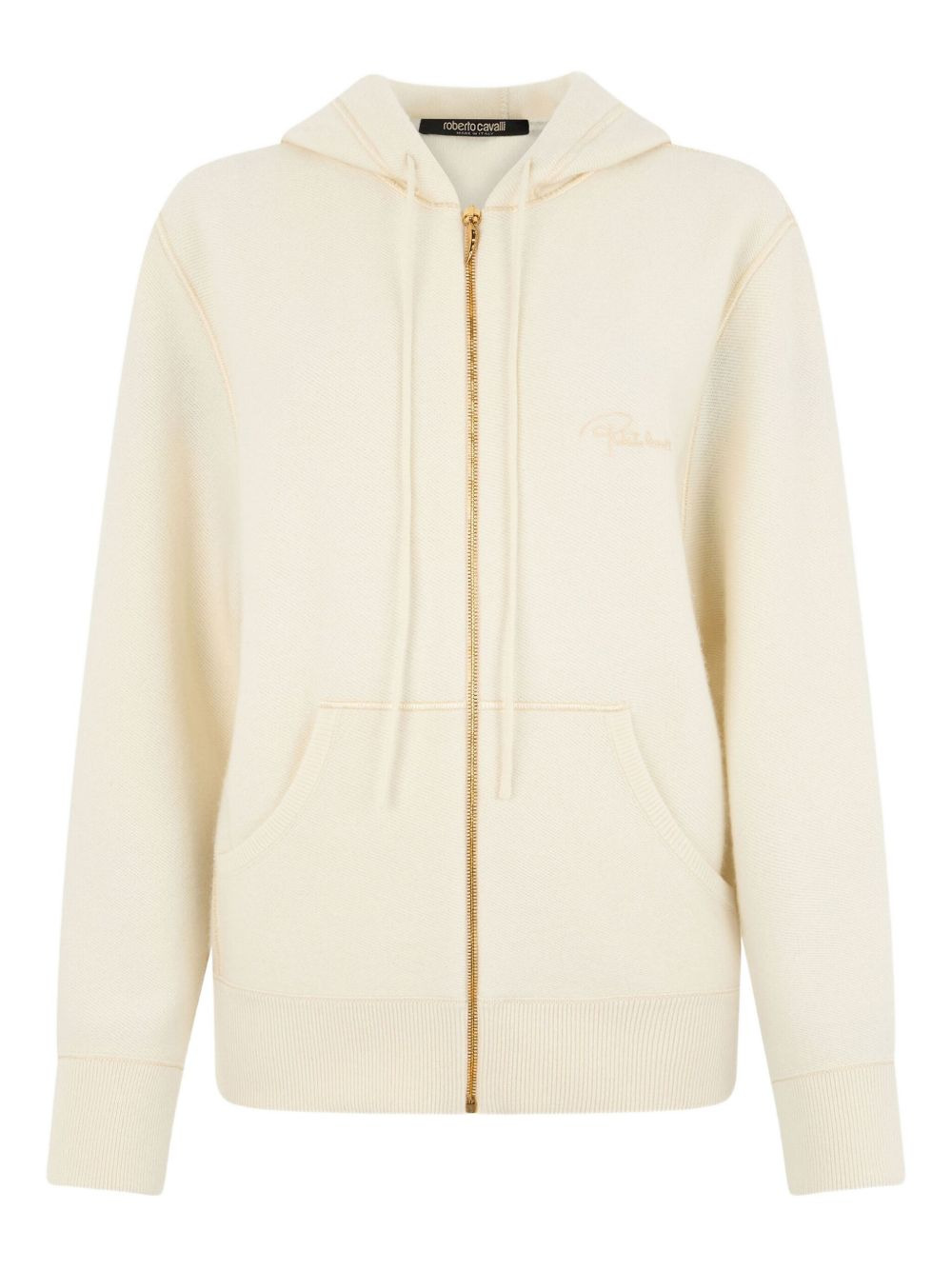 zip-up hooded sweatshirt Highlights - Beige - Zip fastening - Hood - Front pockets - Logo detail Imported Composition Lambs Wool 43%, Viscose 29%, Cashmere 24%, Polyamide 4% Washing instructions Read Manufacturer Guidelines