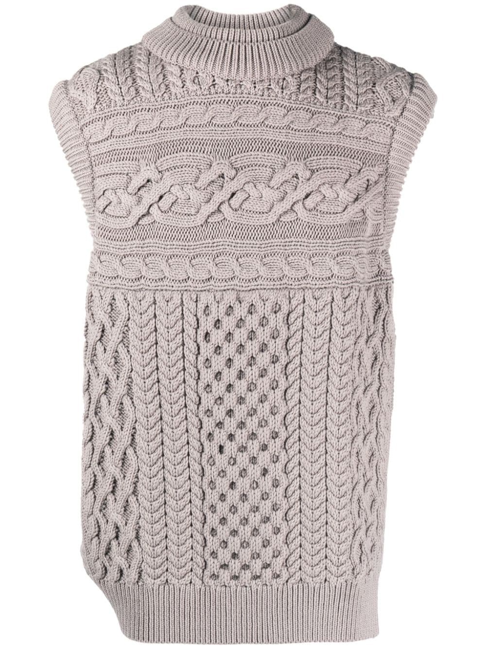 oversized merino-wool vest Highlights - Ash grey - Merino - Ribbed detailing - High-low hem - Mock neck - Sleeveless Imported Composition Merino 100% SIZE & FIT Model measurements Height 6 ft 2 in(1.88 m) Bust/Chest 35.03 in(89 cm) Hips 35.82 in(91 cm) Waist 27.95 in(71 cm) FittingInformation Designed for an oversized fit, offering additional room throughout Made from a midweight non-stretch fabric, this piece offers minimal elasticity when worn This piece fits true to size – take your usual size Washing instructions Machine Wash