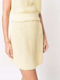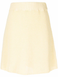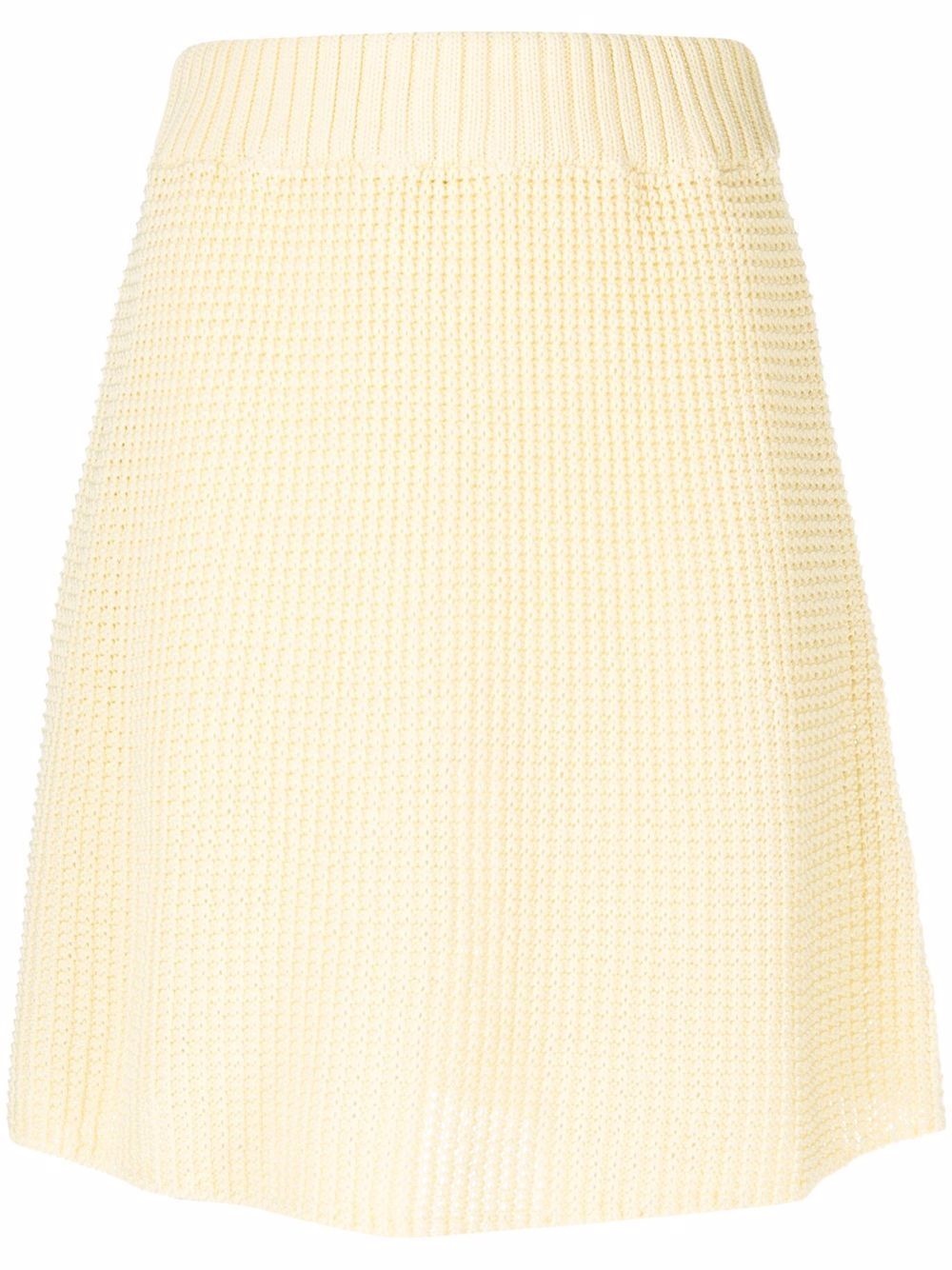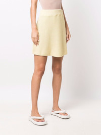 elasticated-waist organic-cotton knitted skirt Highlights - Sun ray yellow - Organic cotton - Knitted construction - Ribbed trim - Elasticated waistband - Curved hem Made in Italy Composition Organic Cotton 100% SIZE & FIT Model measurements Height 5 ft 10 in(1.78 m) Bust/Chest 33.46 in(85 cm) Hips 36.22 in(92 cm) Waist 23.22 in(59 cm) FittingInformation This piece fits true to size. We recommend you get your regular size Designed for a loose fit with a close fit at the waist Made with a mid-weight fabric