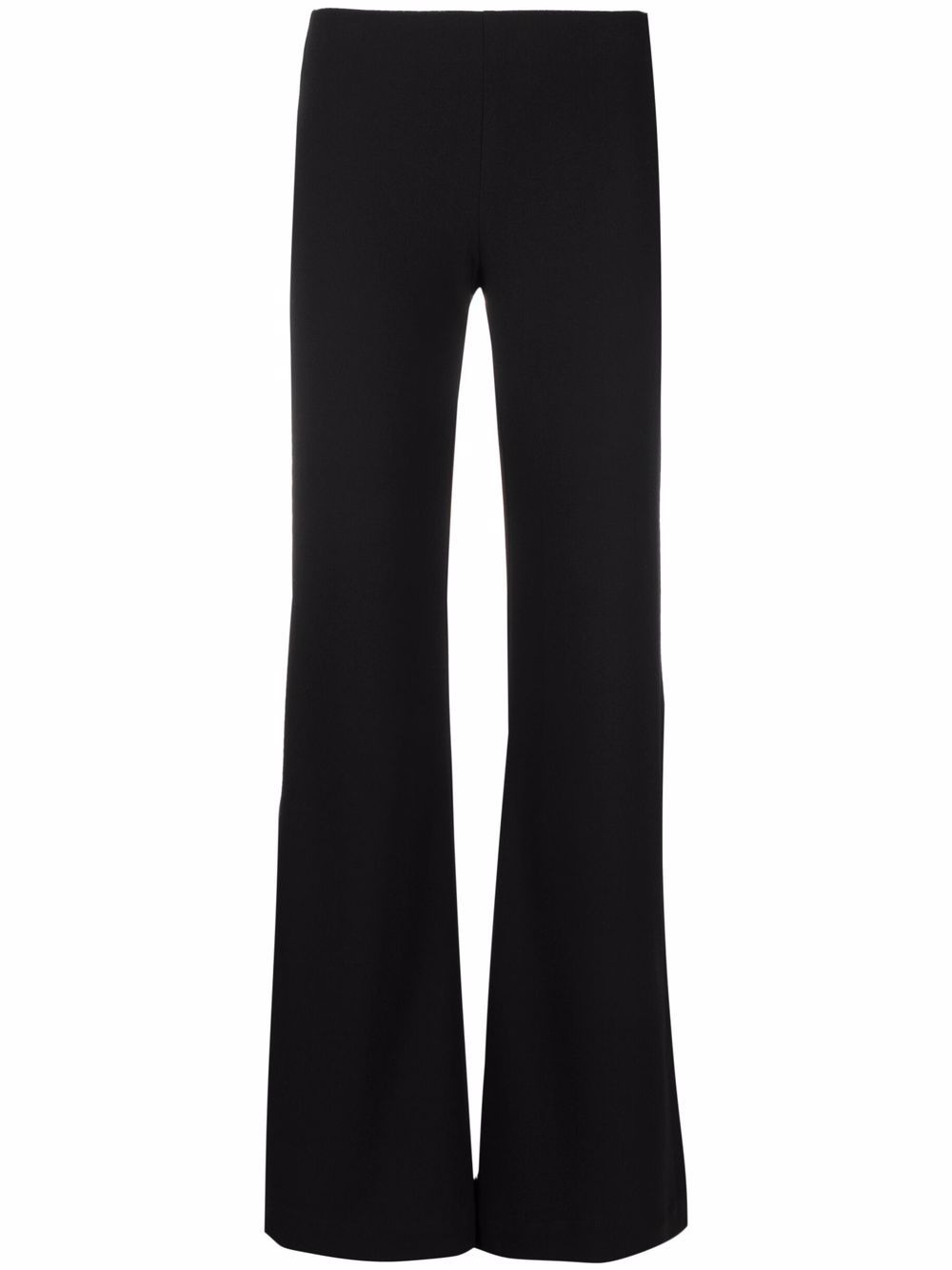 flared mid-rise trousers black mid-rise stretch-design flared hem Imported Composition Polyester 63%, Viscose 32%, Spandex/Elastane 5% SIZE & FIT Model measurements Height 5 ft 10 in(1.78 m) Bust/Chest 31.49 in(80 cm) Hips 36.22 in(92 cm) Waist 25.59 in(65 cm) Washing instructions Machine Wash