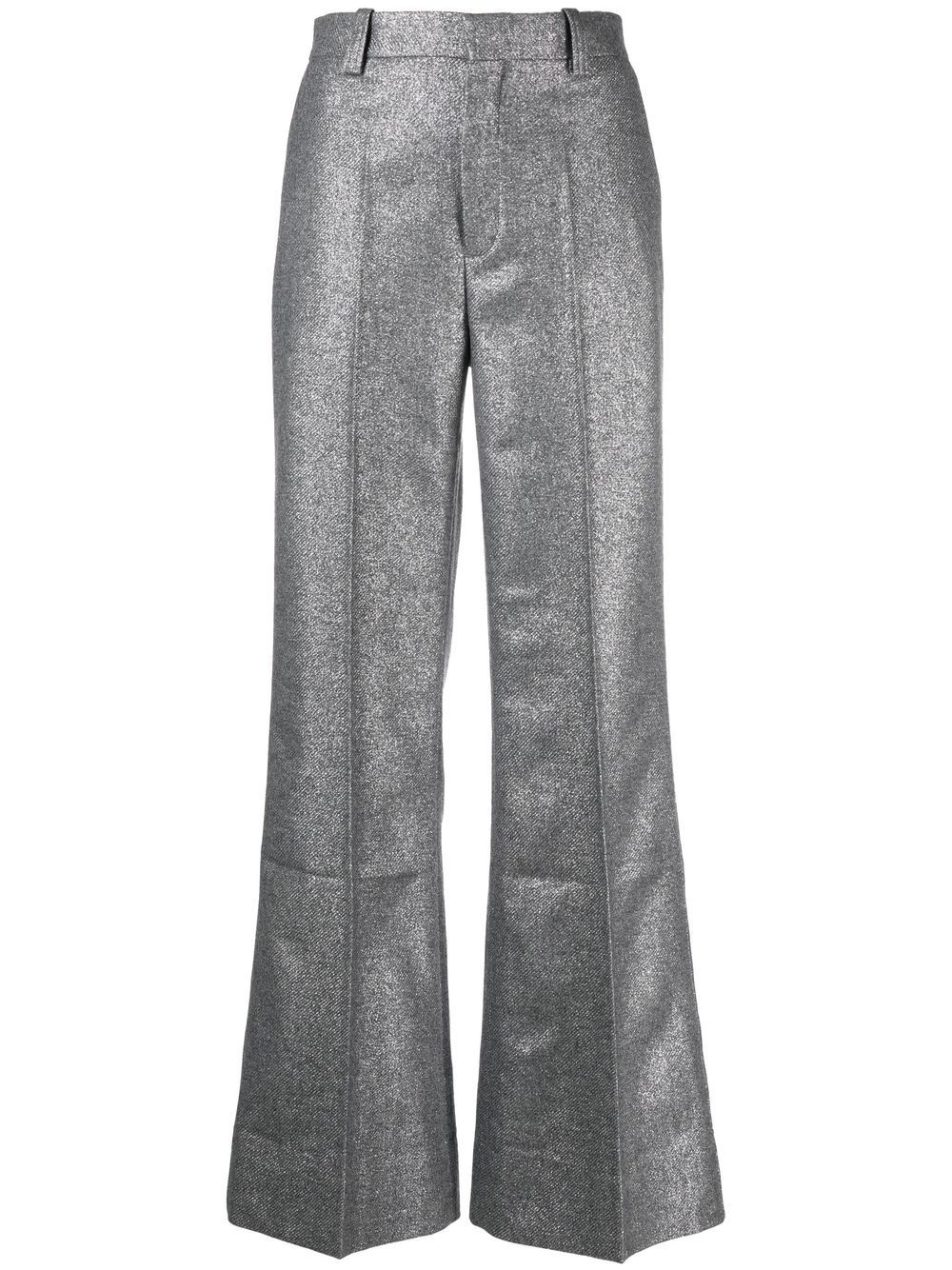 high-waisted glitter flared trousers Highlights - Silver - Recycled wool blend - Glitter detailing - High-waisted - Pressed crease - Concealed front fastening - Belt loops Imported Composition Outer: Recycled Wool 60%, Polyamide 27%, Polyester 9%, Other fibres 4% Lining: Viscose 100%
