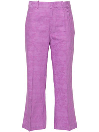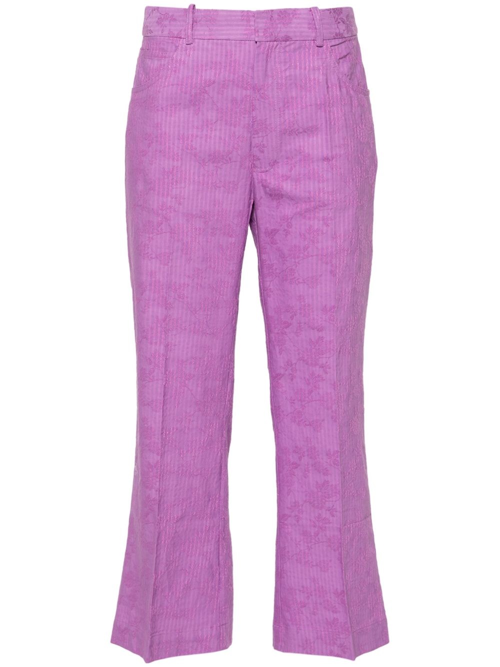Miso striped trousers Highlights - Orchid purple - Cotton blend - Vertical stripe pattern - Floral embroidery - Belt loops - Pressed crease - Coin pocket - Two diagonal pockets to the sides - Front button and zip fastening Imported Composition Outer: Cotton 91%, Viscose 9% Lining: Polyester 55%, Viscose 45% SIZE & FIT Model measurements Height 5 ft 10 in(1.78 m) Bust/Chest 31.49 in(80 cm) Hips 37 in(94 cm) Waist 23.62 in(60 cm) Washing instructions Hand Wash