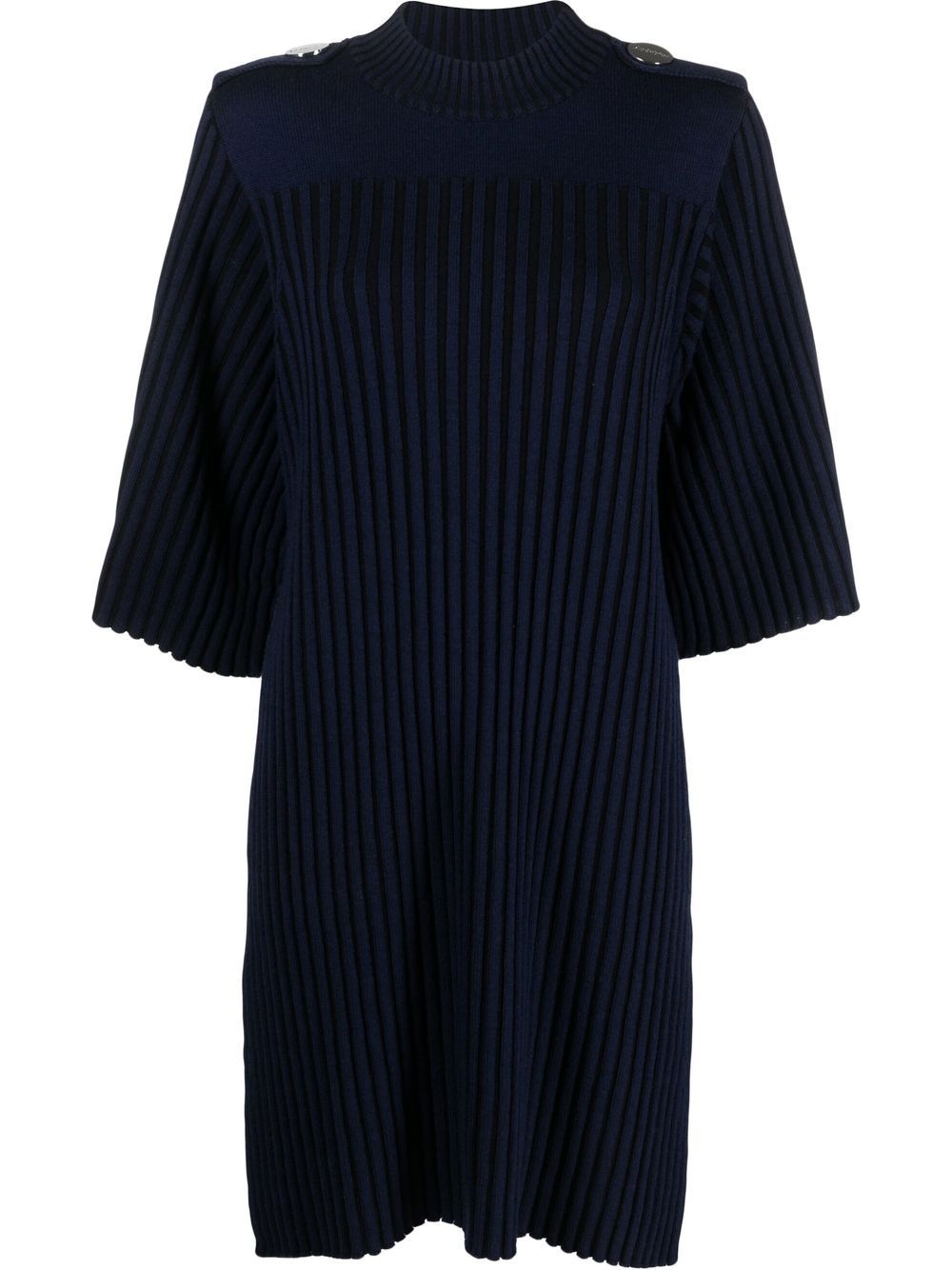 ribbed knitted midi dress navy blue merino wool ribbed knit round neck long sleeves mid-length Imported Composition Merino 100%