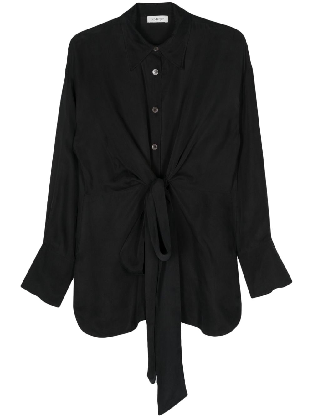 twill long-sleeved shirt Highlights - Black - Twill weave - Pointed flat collar - Long sleeves - Buttoned cuffs - Self-tie fastening detail - Short side slits - Internal logo tag - Front button fastening Imported Composition Cupro 60%, Viscose 40%