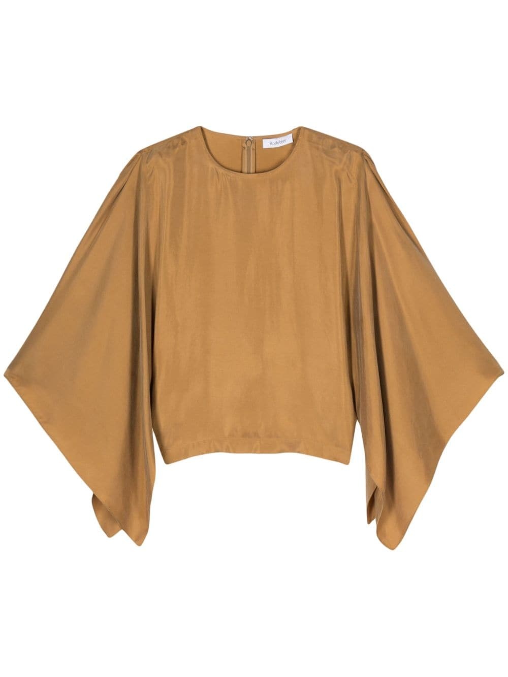 wide open-sleeves blouse Highlights - Camel brown - Twill weave - Cape design - Round neck - Half-length wide open sleeves - Internal logo tag - Straight hem - Concealed rear zip fastening Imported Composition Cupro 60%, Viscose 40%