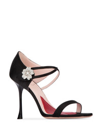 105mm leather sandals Highlights - Black - Leather - Floral applique - Ankle strap - Branded insole - Stiletto heel - Open toe Made in Italy Composition Silk 100% SIZE & FIT Measurement HEEL 3.93 in(10 cm)